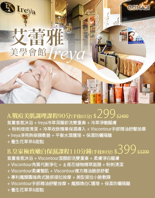艾蕾雅美學會館 - 136674是最近關注的一項還算不錯的商品,一樣是在Gomaji上發現的。我真的非常喜歡逛Gomaji,尤其很多東西價格都很不錯,也有不少優惠券可以用,下面是賣場提供的商品簡介: